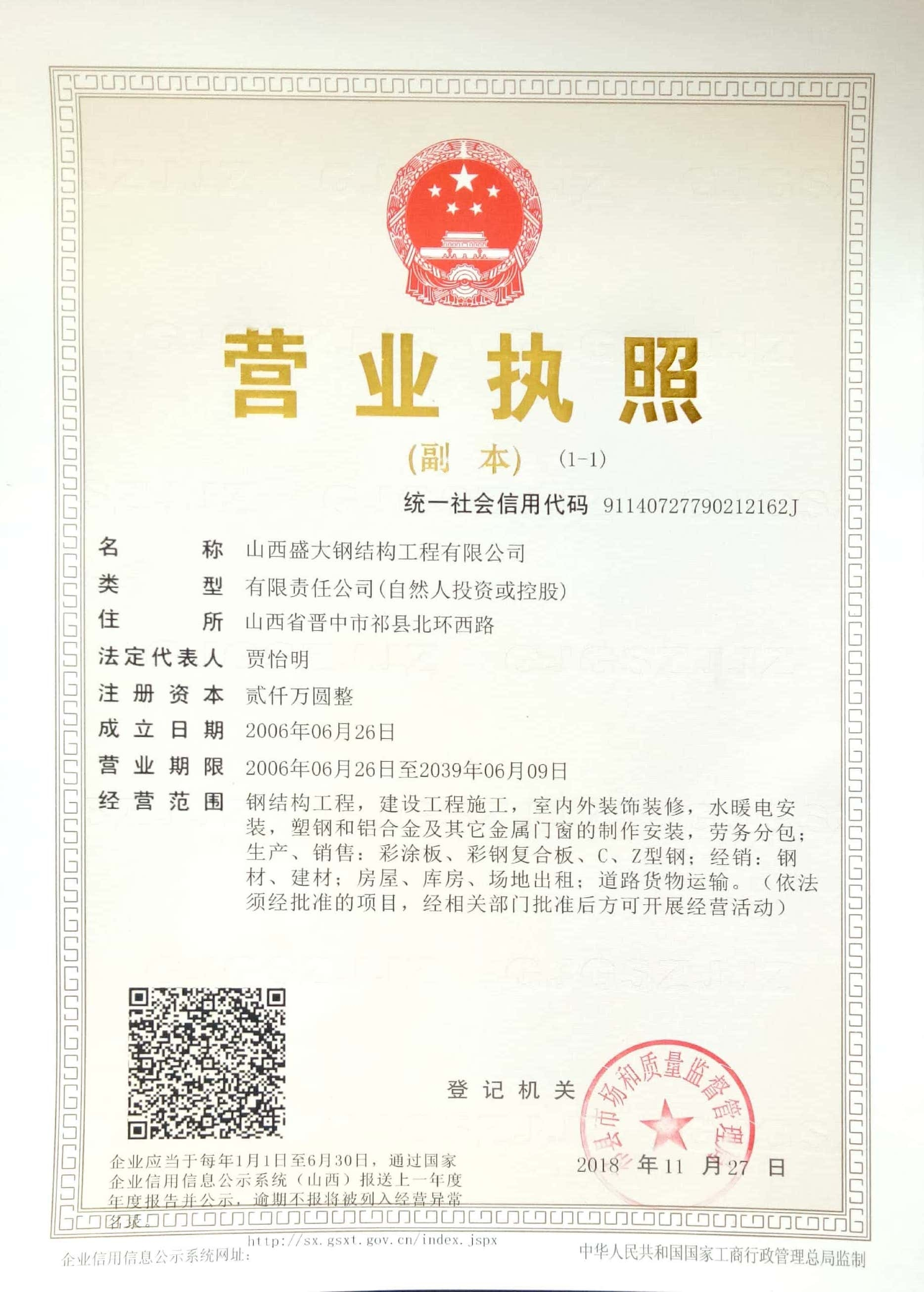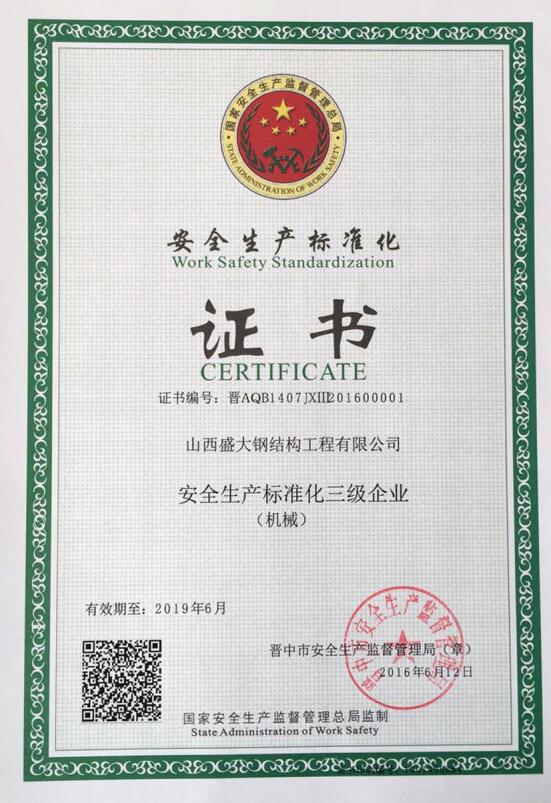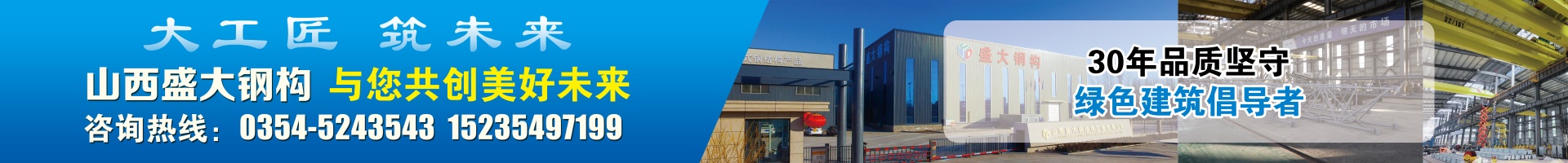 山西盛大鋼結(jié)構(gòu)工程有限公司 山西盛大鋼結(jié)構(gòu)工程有限公司成立于1996年,坐落于國(guó)家歷史文化名城——山西祁縣。擁有兩大智能化鋼結(jié)構(gòu)生產(chǎn)基地,占地110畝,建筑面積3萬(wàn)余平方米,具備鋼結(jié)構(gòu)專業(yè)承包貳級(jí)、建筑工程施工總承包貳級(jí)資質(zhì),是一家集設(shè)計(jì)、制造、施工于一體的大型鋼結(jié)構(gòu)工程企業(yè)。 盛大鋼構(gòu)是中國(guó)鋼結(jié)構(gòu)協(xié)會(huì)會(huì)員單位,山西鋼結(jié)構(gòu)協(xié)會(huì)副會(huì)長(zhǎng)單位,山西建筑企業(yè)商會(huì)理事單位,山西省土木建筑學(xué)會(huì)會(huì)員單位,擁有國(guó)家知識(shí)產(chǎn)權(quán)局注冊(cè)商標(biāo)。公司已通過(guò)ISO9001質(zhì)量管理體系認(rèn)證,體系覆蓋鋼結(jié)構(gòu)加工與施工等核心… more +